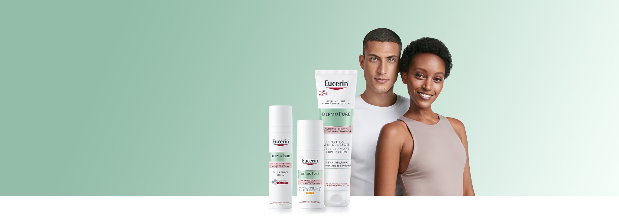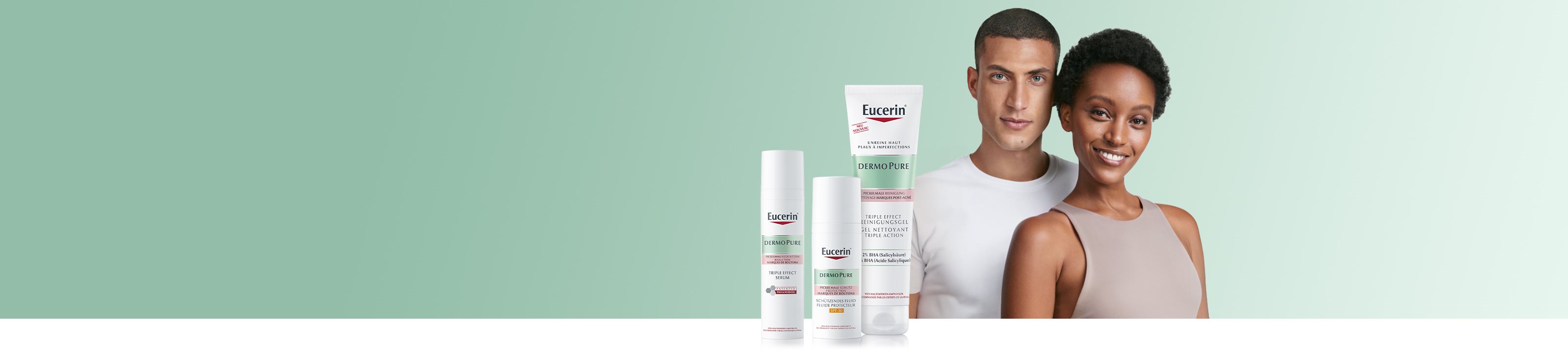 Die Produkte der Pflegeserie Eucerin DermoPure sind speziell für fettige und zu Unreinheiten neigende Haut entwickelt worden. Die in den Formeln enthaltenen Inhaltsstoffe wirken effektiv den wichtigsten Faktoren unreiner Haut entgegen.