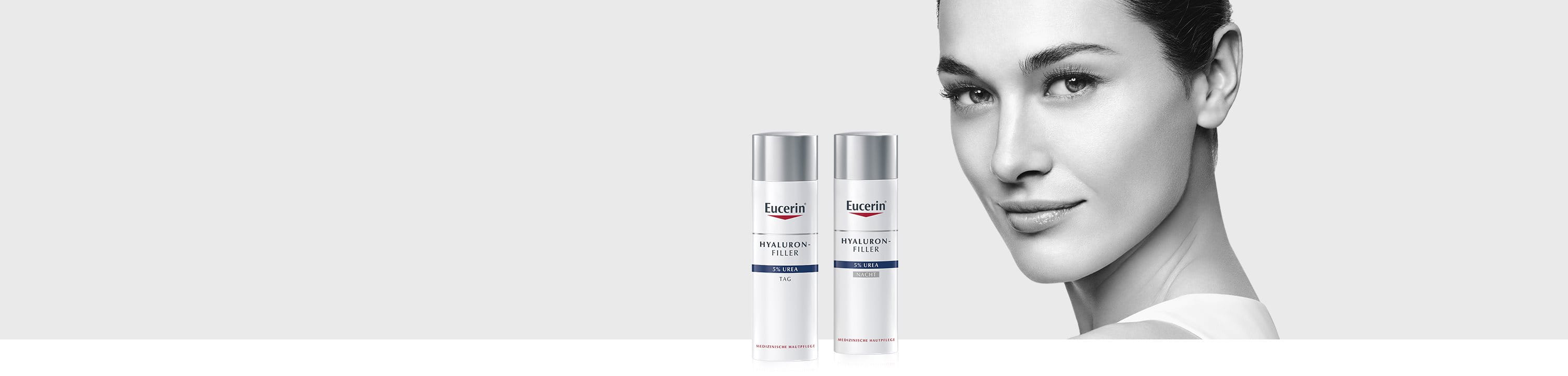 Zwar trägt trockene Haut zur Entstehung von Falten bei, jedoch sind kaum Anti-Falten Pflegen für trockene Haut erhältlich. Trockene Haut ist sehr empfindlich, daher ist es unerlässlich, dass entsprechende Hautpflegeprodukte diese nicht reizen oder die Ursachen trockener Haut noch verstärken. Die Eucerin HYALURON-FILLER + UREA Pflegeserie enthält eine Kombination aus Urea und Hyaluronsäure, die gleichzeitig sehr trockene Haut und Falten bekämpft – in einem einzigen Produkt. Alle Produkte dieser Pflegeserie sind wissenschaftlich getestet, sehr gut verträglich und auch bei Psoriasis geeignet.